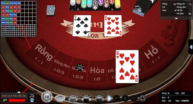 Một trong những chiến lược hiệu quả khi chơi Rồng Hổ là theo dõi biểu đồ kết quả và nhận biết mô hình xuất hiện trong trò chơi. Bằng cách quan sát lịch sử các ván chơi trước đó, người chơi có thể nhận ra các mô hình tiềm năng, chẳng hạn như chuỗi thắng của cửa Rồng hoặc Hổ, hoặc các kết quả theo dạng cụm. Điều này giúp họ đưa ra quyết định cược thông minh hơn, tăng cơ hội chiến thắng và tránh những quyết định dựa vào may mắn ngẫu nhiên.